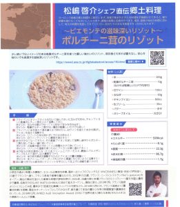 今月は、松嶋啓介シェフお薦めの郷土料理から、ヨーロッパの郷土料理 「~ピエモンテの滋味深いリゾット~ポルチーニ茸のリゾット」をご紹介します。